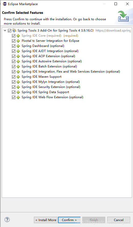 这里我使用的是第一个Spring Tools 3 Add-On for Spring Tools 4 3.0.16.CI,选择install