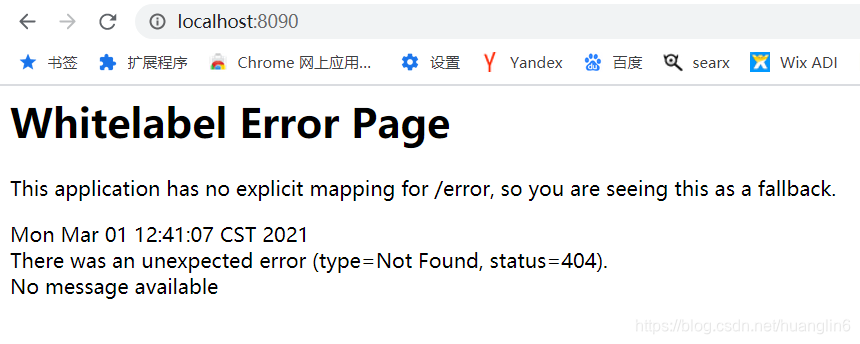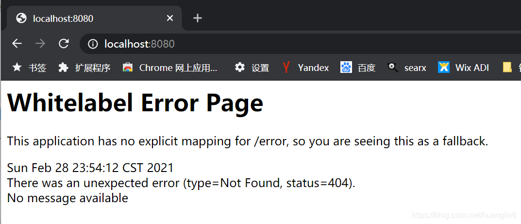 输入8080,你会发现报错了Whitelabel Error Page 。简单来说呢,就是你的SpringBoot的启动类(类名上面有@SpringBootApplication注解 )与controller包不在同一个目录下(或者说你根本就没有controller包),ok我们新建一个controller包