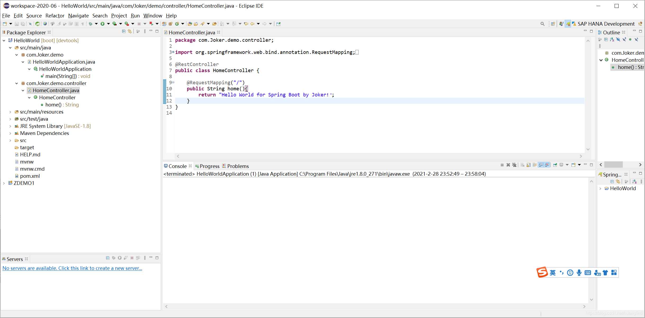 return "Hello World for Spring Boot by Joker!";