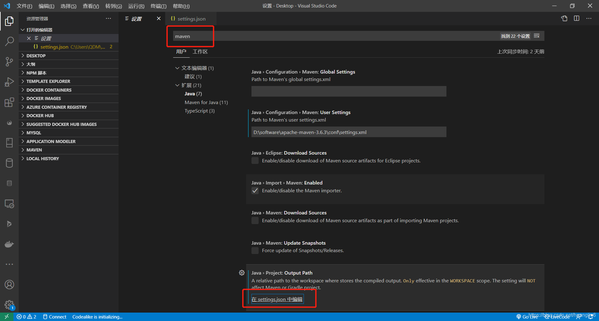 打开设置,然后搜索maven