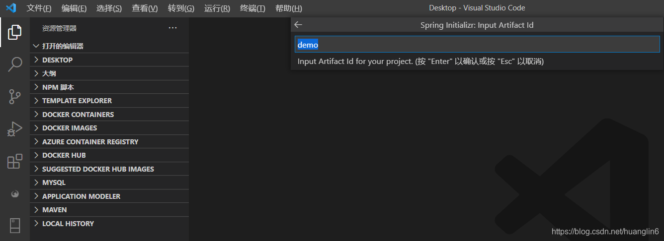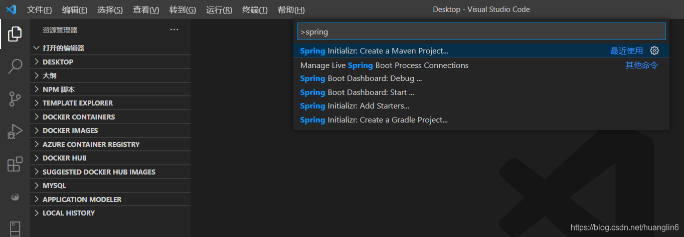 打开vscode 命令控制板,ctrl+shift+P,输入spring ,选装 Spring Initializr:Create a Maven Project
