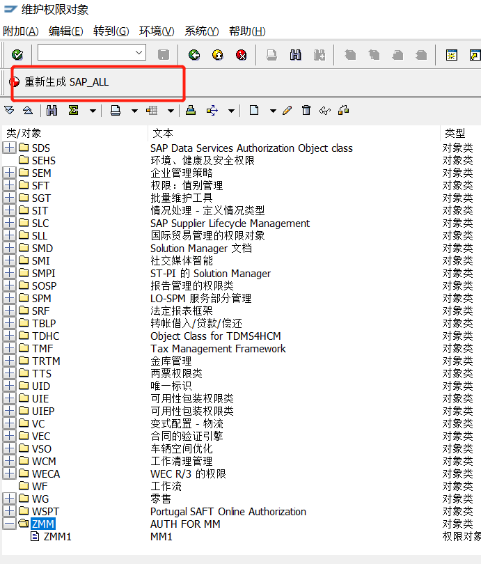 SAP创建权限对象