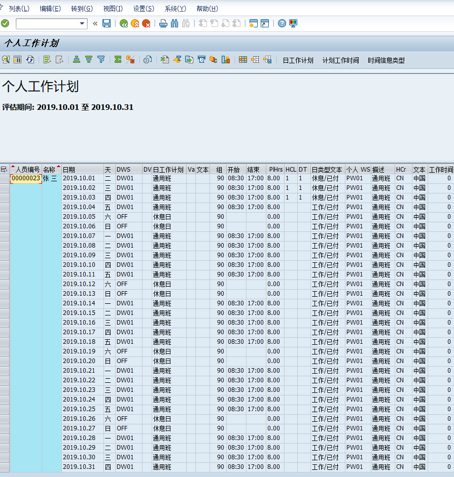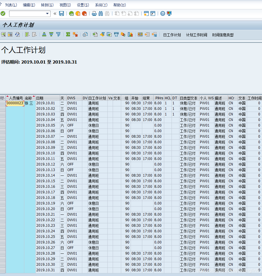 当需要读取0007的日工作计划的时候可以使用到这个