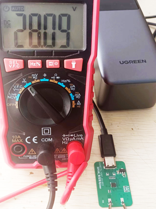 例如PD协议通过Type-C的CC引脚通信,QC协议通过USB-A的D+/D-引脚传输数据。根据协商结果,XSP16芯片控制充电器输出适配的电压(如PD协议支持5V/9V/12V/15V/20V)