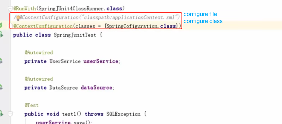 @Runwith 注解替换原来的运行期(主要是Spring内核进行运行,步骤1:Spring容器创建,步骤2:配置加载)