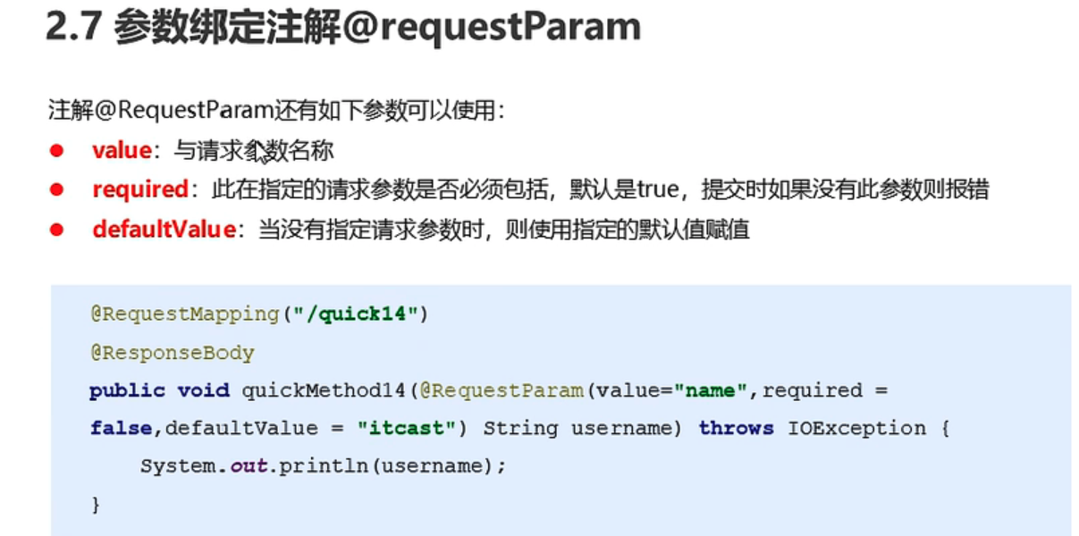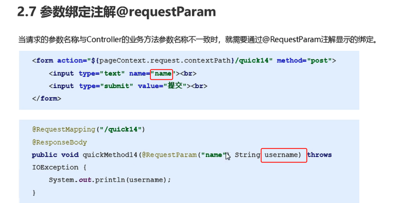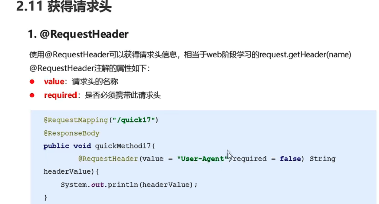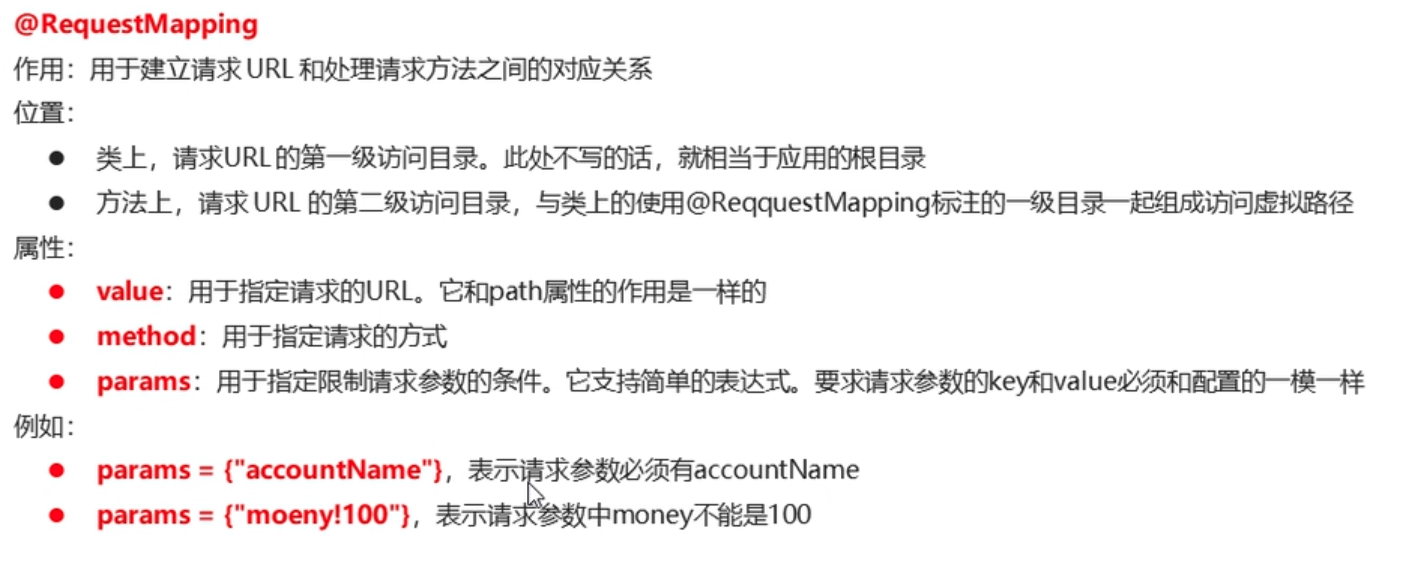 @RequestMapping 修饰方法,将请求路径映射到Controller对应的处理方法上;修饰类,给请求路径添加访问前缀(二级路径)。(参考本节4.4获得集合类型参数)