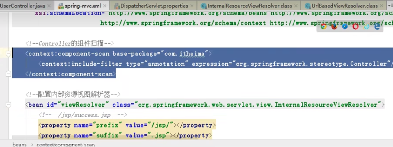 - 静态资源的2种方式(spring-mvc.xml中配置)