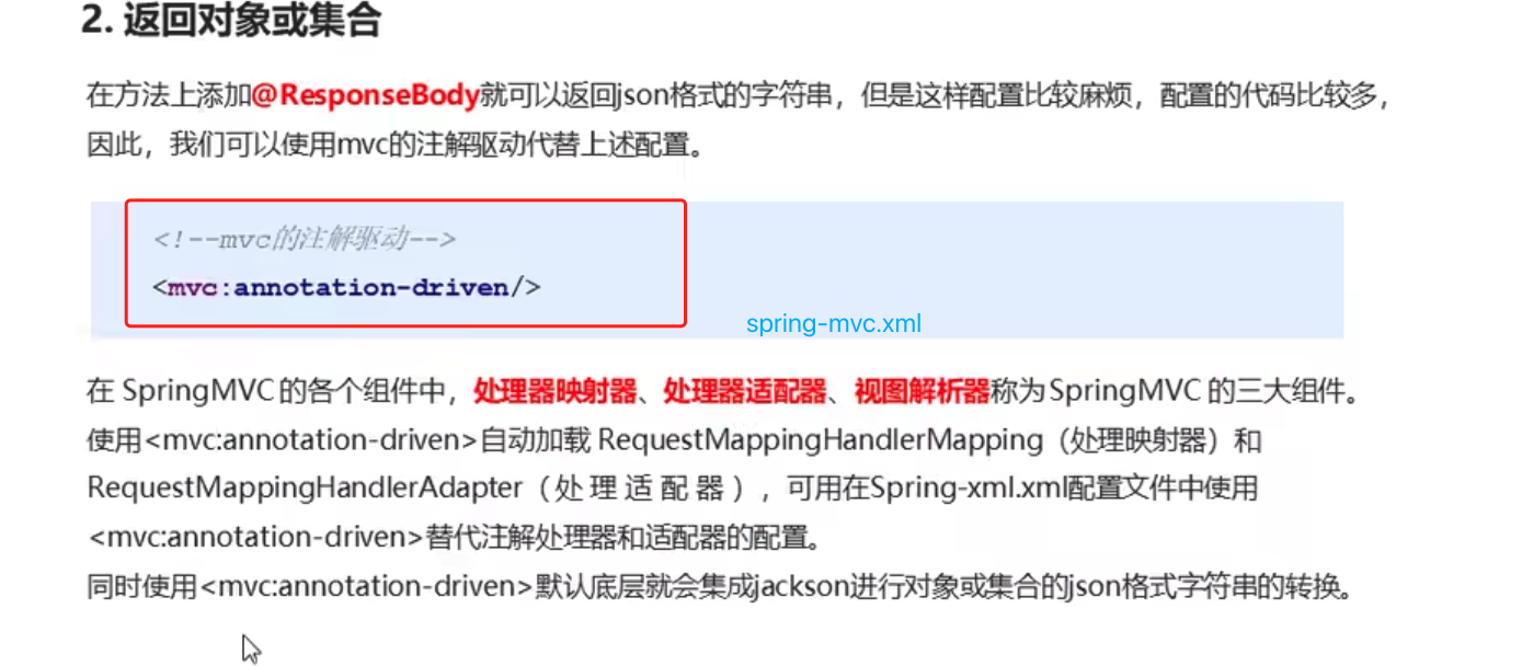 -返回的对象转换为json字符串,要加上mvc的注解驱动