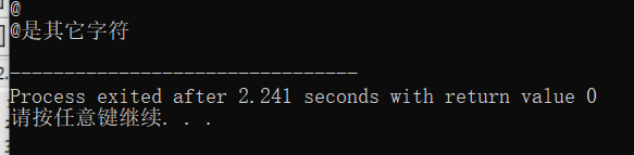 // ex4.cpp // 判断字符类型 #include <stdio.h> int main() { char x; x = getchar(); if(x>='0'&&x<='9') // 判断x是数字字符表达式 printf("%c是数字字符\n", x); else if(x>='a'&&x<='z'||x>='A'&&x<='Z') // 判断x是大写或小写英文字母的表达式 printf("%c是英文字母\n", x); else printf("%c是其它字符\n", x); return 0; }