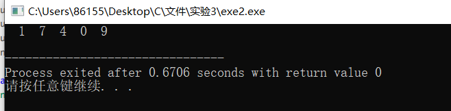 //生成N个0~9之间的随机整数,并打印输出 #include<stdio.h> #include<stdlib.h> #include<time.h> #define N 5 int main(){ int x,n; srand(time(0)); n=0; do{ n++; x=rand()%10; printf("%3d",x); }while(n<N); printf("\n"); return 0; }
