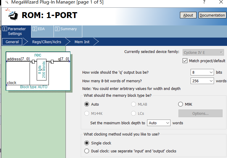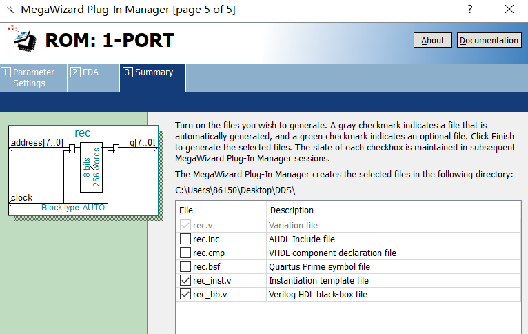 3-2在工程中生成romIP核来存储数据,详细设置如下,注意最后一栏设置要生成_inst.v文件便于例化模块: