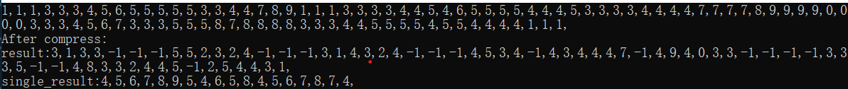 按理说还有改进的方法,笔者能想到的就是把连续 几个单独的数字用一个-1来表示,但是相应的会在single_result中增加一个参数表示连续的单数字出现的数量,本质上压缩大小并未减少,因此未进行代码实现。
