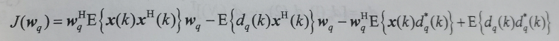 式中,x(k)=[x0(k),x1(k),...xM-1(k)]T。代价函数为第q个信号的阵列输出与该信号在时刻k的期望形式之间的平方误差的数学期望值,将上式展开可得。