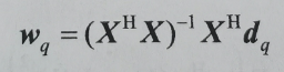 这就是最小二乘意义下针对第q个用户的波束形成器的最佳权向量,上式中X和dq分别表示数据向量和期望信号向量,其值为: