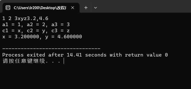 printf("a1 = %d,a2 = %d,a3 = %d\n",a1,a2,a3);