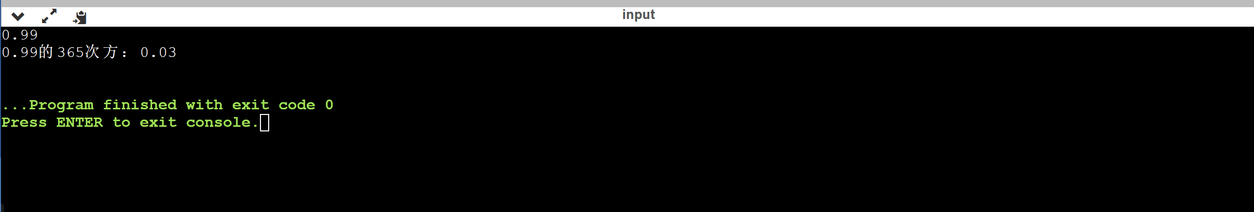 printf("%.2f的365次方:%.2f\n",x,ans);
