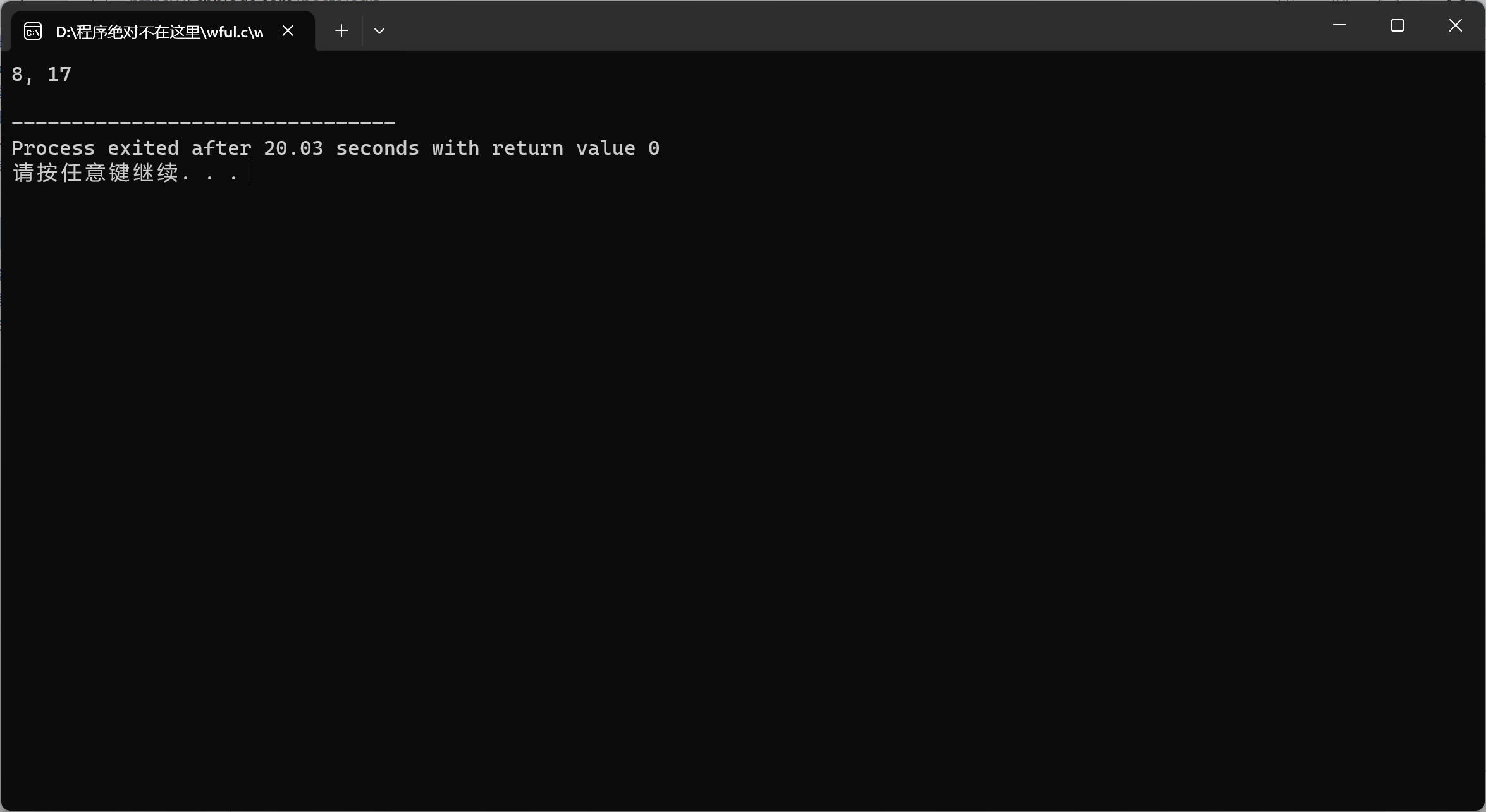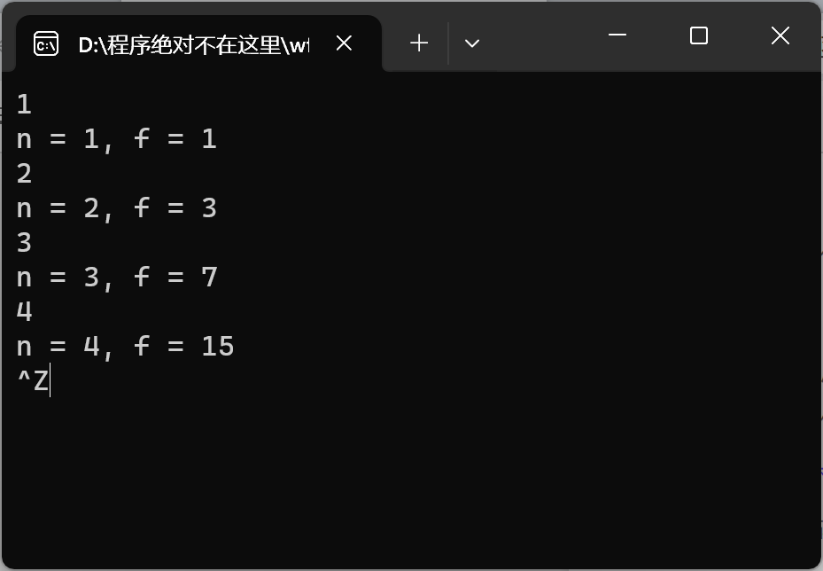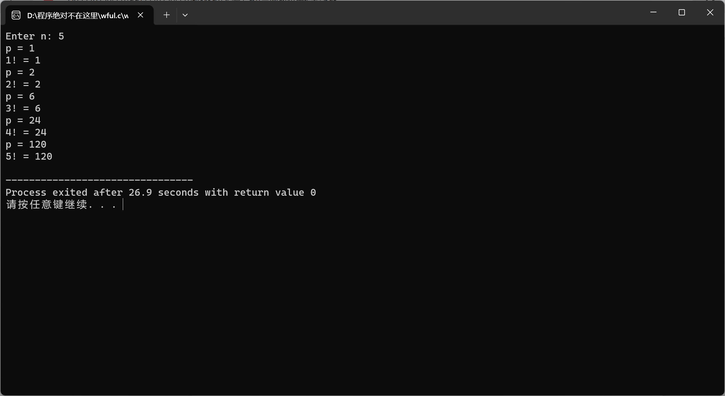 printf("n = %d, f = %lld\n", n, f);//英文字母ll