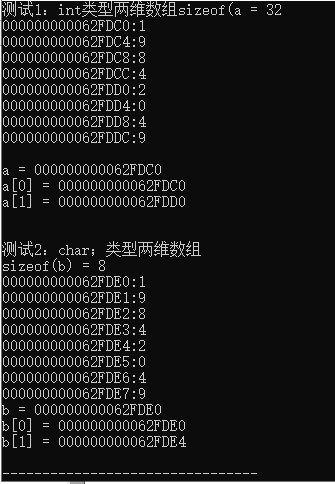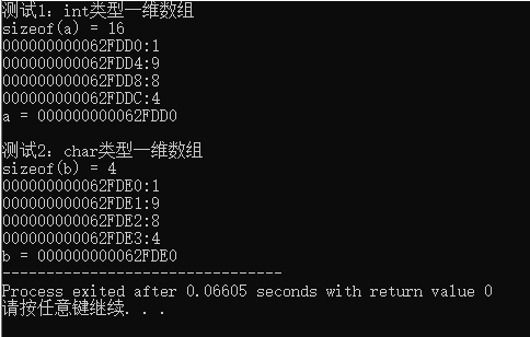 char型数组b,在内存中是连续存放的,每个元素占用1个内存字节单元,数组名b与&b[0]对应的值一样。