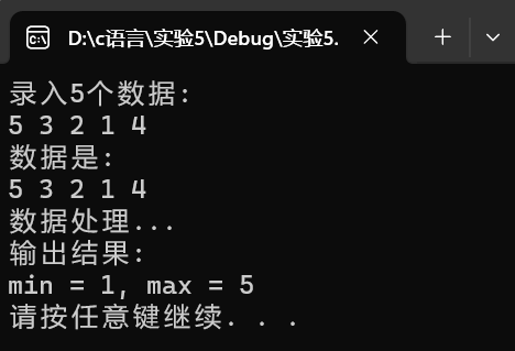 printf("min = %d, max = %d\n", min, max);