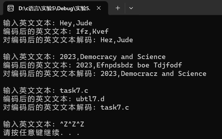 printf("编码后的英文文本: ");