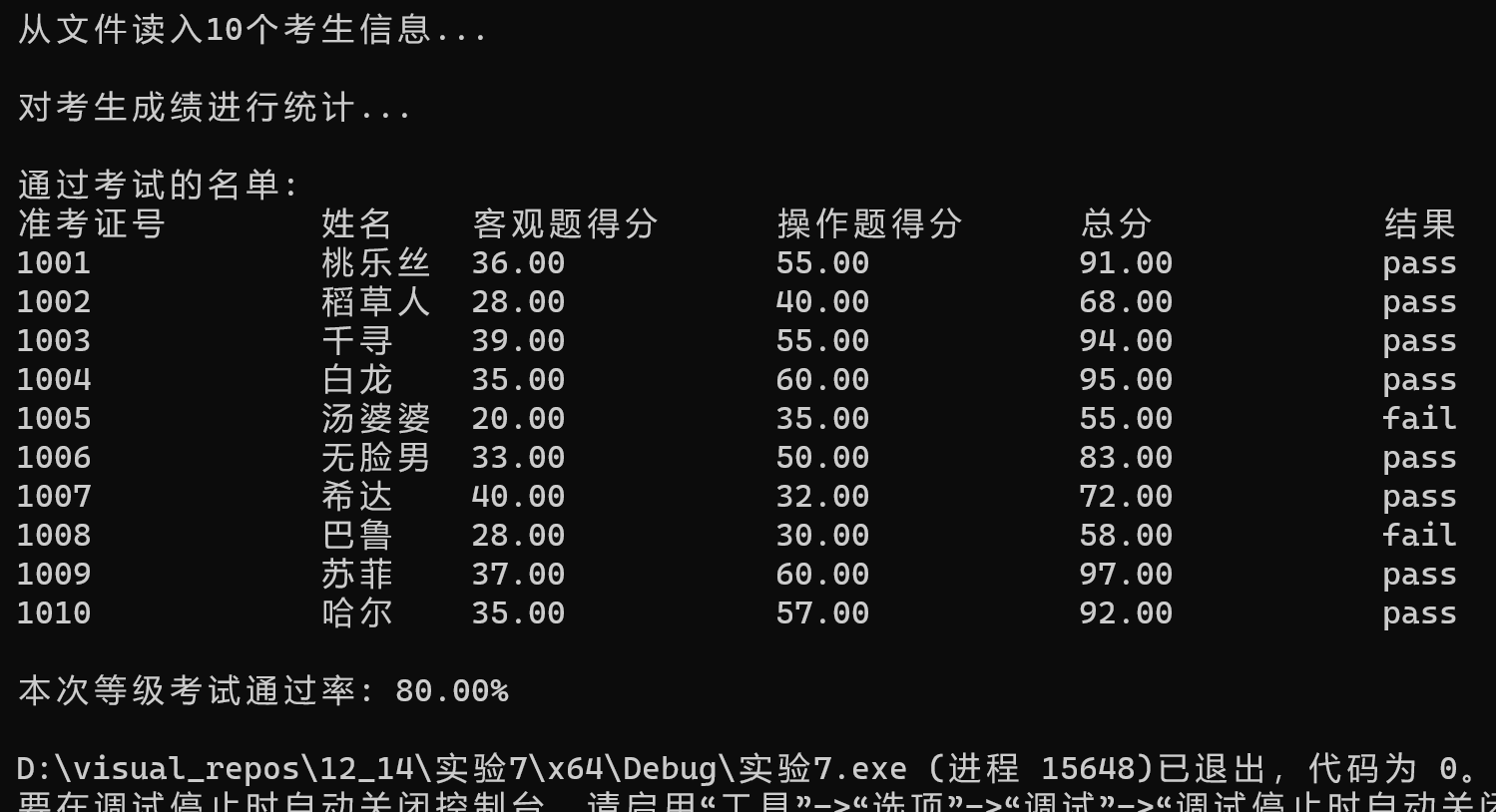 // 把通过考试的考生完整信息写入文件list_pass.txt
