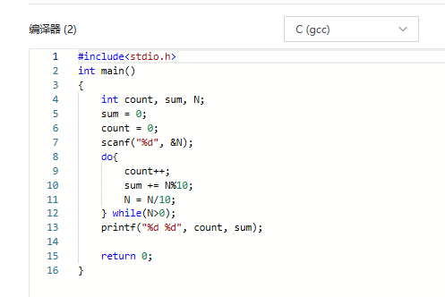 数据表达:首先是运用do while语句,再运用count++得到N的位数,再用sum+=N/10 N的余数之和,再用N=N/10进行变换;