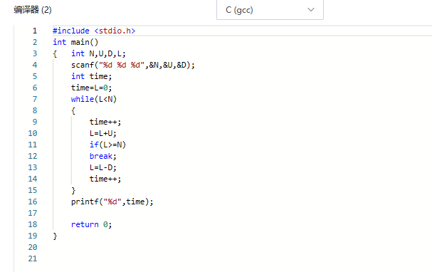 这里要求不足1分钟按1分钟计,并且假定只要在某次上爬过程中蠕虫的头部到达了井的顶部,那么蠕虫就完成任务了。初始时,蠕虫是趴在井底的(即高度为0)。