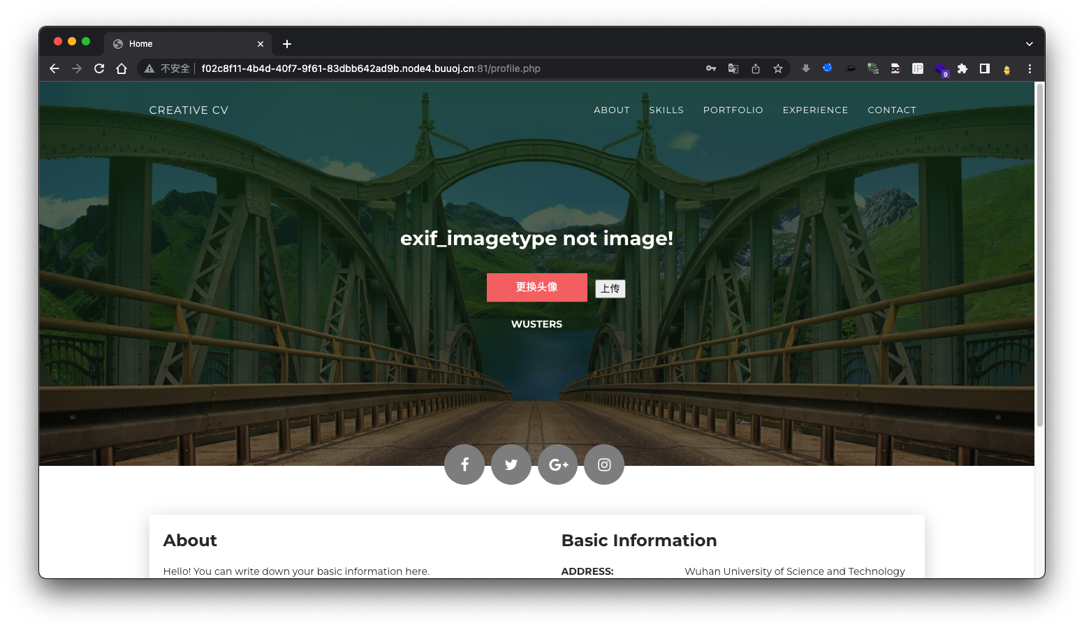 提示exif_imagetype not image!,exif_imagetype是php里通过文件头判断是不是图片,可以通过图片马绕过