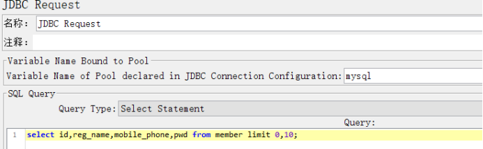 (1)Variable Name of Pool declared in JDBC Connection Configuration:变量名mysql;