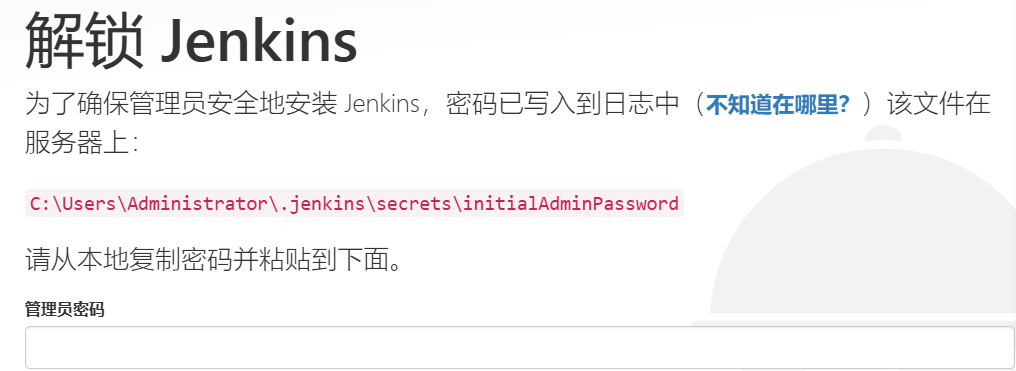 4.命令行提示:Jenkins is fully up and running,浏览器进入: http://localhost:8080/jenkins