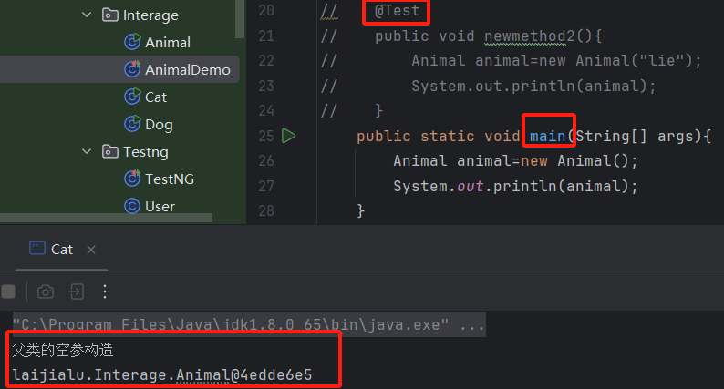 在子类或者多态执行时要在@Test下的方法,main方法才能执行,因此在子类创建对象要在@Test下,main方法里才能执行。