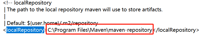 在settings.xml文件中搜索localRepository,本地仓库配置为新建本地仓库的路径: