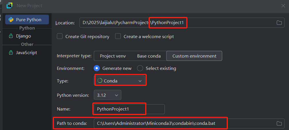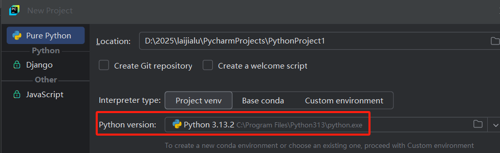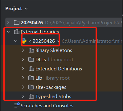 4.点击create,新项目和conda环境开始创建。除了项目,还会出现项目自己的conda环境的依赖。