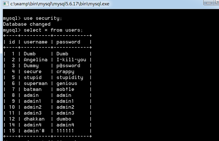 admin'#将后面语句注释掉,更新的密码为原来用户admin的密码。