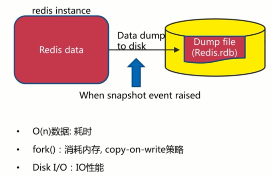 快照:某时某点的数据的完整备份。比如:MySql Dump和Redis RDB