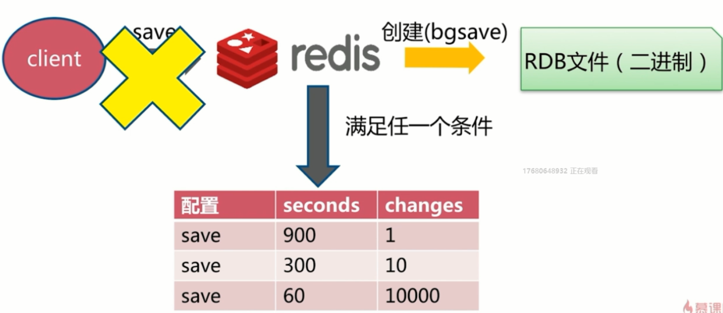 - 上图配置的意思是,当在60秒内有10000条修改或者300秒内有10次修改的时候,进行自动保存操作,并且内部其实是通过bgsave实现的。