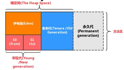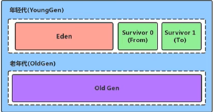 其中年轻代又可以分为Eden空间、Survivor0和Survivor1空间(或者称为from和to区)