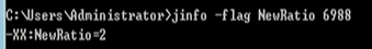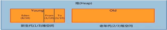 默认:-XX:NewRation=2,表示新生代占比1,老年代占比2,新生代占整个堆的1/3