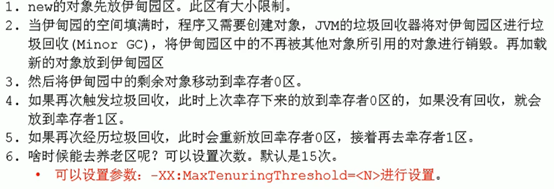 a) 如果Survivor区中的相同年龄的所有对象的大小总和大于Survivor空间的一半,年龄大于或等于该年龄的对象可以直接进入老年代,无须等到MaxTenuringThreshold中要求的年龄