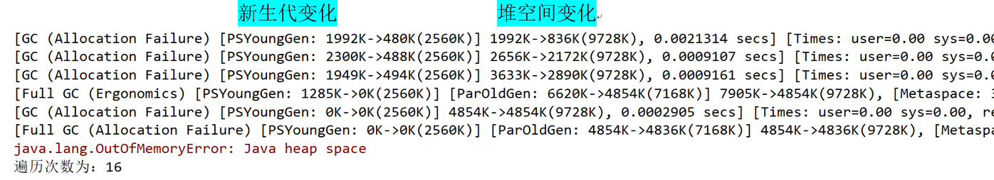 表示堆空间在YGC前后的使用大小,YGC之前,还没有使用老年代,所以整个堆空间使用的大小就等于新生代使用的大小。回收后发现836k比480k大,说明有些数据放到了老年代中。
