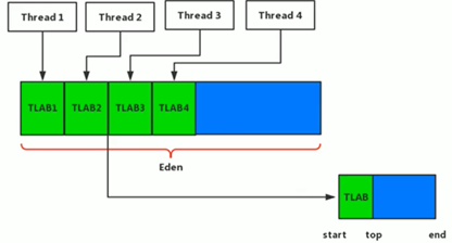 堆空间为每个线程分配的TLAB(Thread Local Allocation Buffer)