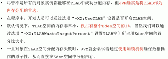 从内存模型而不是垃圾收集的角度,对Eden区域继续进行划分,JVM为每个线程分配了一个私有的缓存区域,它包含在Eden空间内。