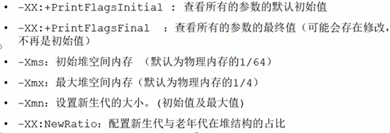 (4)-Xmn:设置新生代的空间大小(一般不设置,而是通过-Xms –Xmx和NewRatio来确定)