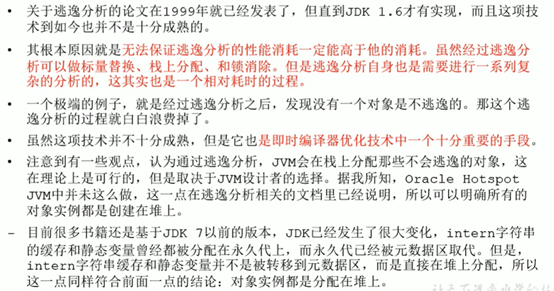 随着JIT编译期的发展与逃逸分析技术的逐渐成熟,栈上分配、标量替换优化技术将会导致一些微妙的变化,所有的对象都分配到堆上也渐渐变得不那么“绝对”了。