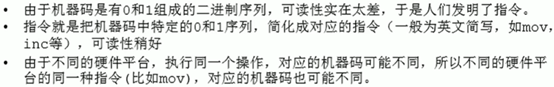 汇编过程:实际上指把汇编语言代码翻译成目标机器指令的过程。