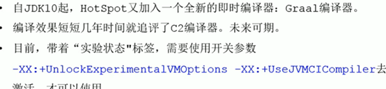 在Hotspot VM中内嵌有两个JIT编译器,分别为client和server模式下的编译器。大多数情况下我们简称为C1编译器和C2编译器。开发人员可以通过命令显式指定Java虚拟机在运行时刻到底使用哪一种即时编译器:
