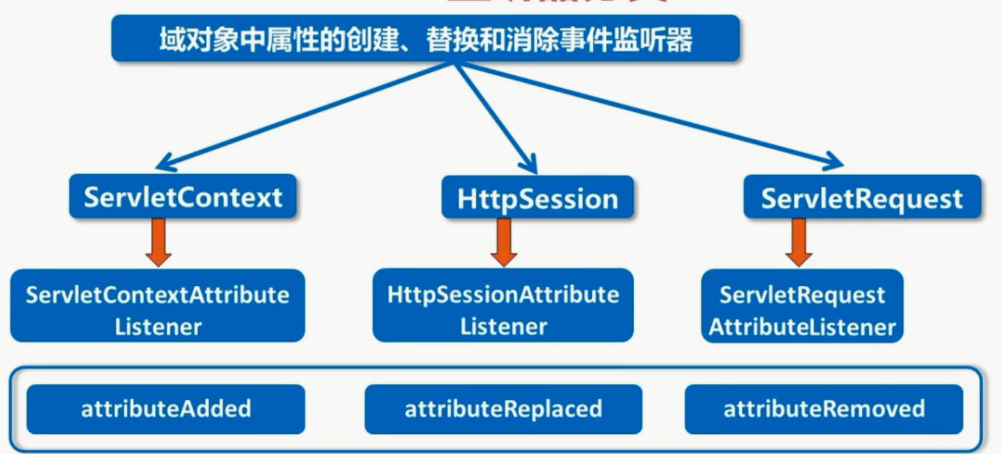 - 用于监听ServletContext、HttpSession、ServletRequest等域对象的创建、销毁及其属性修改发生变化的事件。