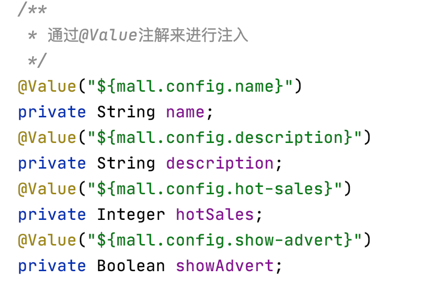 然后在代码中通过使用@Value注解进行注入,在代码中使用变量即可: