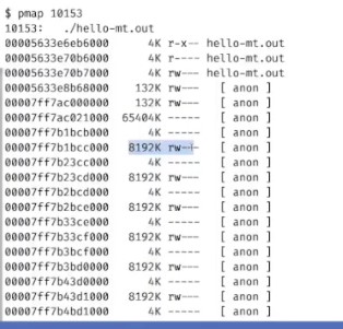 可以在上图中看出,每个进程有8M的堆栈,并且每个堆栈之间有4K的分隔区