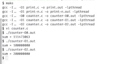 由于并发性低,-O2的运行结果打印出了看似正确的结果